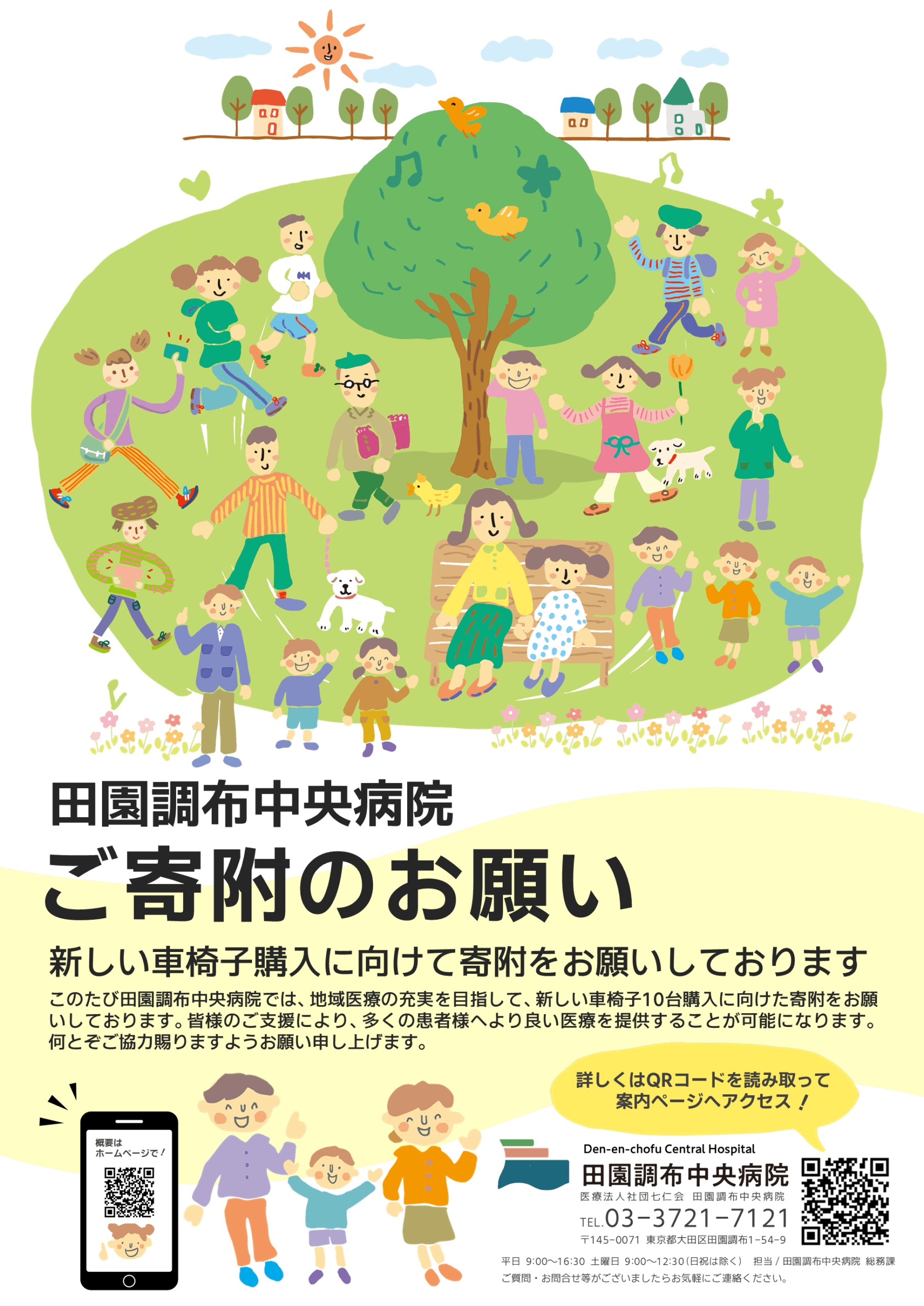 このたび、田園調布中央病院では地域医療の充実を目指して新しい車椅子の10台購入に向けた寄附をお願いしております。