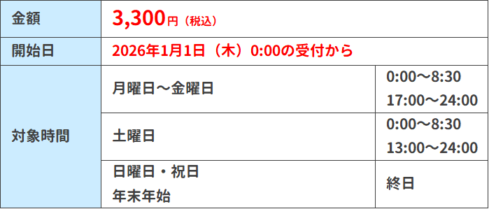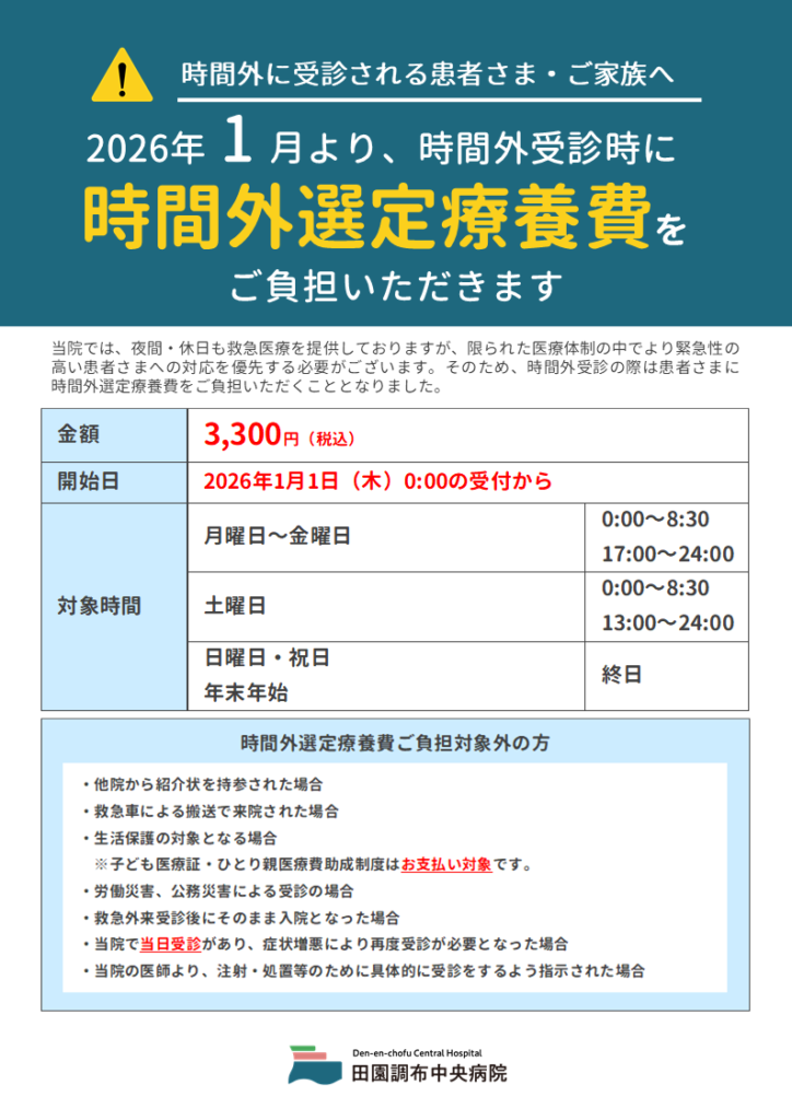 時間外(夜間・休日)選定療養費のお知らせ(2026年1月1日より)