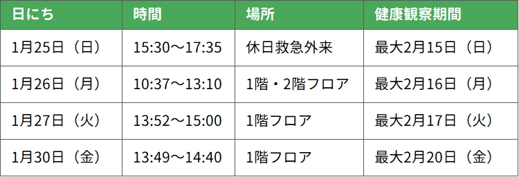 当該患者さまが院内に滞在された時間帯に、来院された方の中で「麻しん」に対する免疫をお持ちでない方は、体調の変化にご注意いただく必要があります。